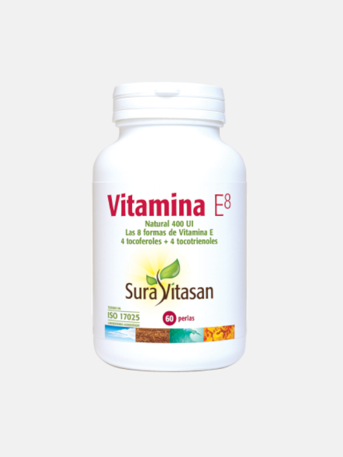 La fórmula de Vitamina E8 natural aporta 400 UI de Vitamina E incluyendo los 8 compuestos de tocoferoles y tocotrienoles que conforman la vitamina E tal y como se encuentra en la naturaleza.
