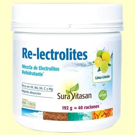 Re-lectrolites de SuraVitasan es una mezcla de electrolitos rica en vitamina B6, vitamina C y magnesio, para contribuir al equilibrio electrolítico necesario para una vida activa. Re-lectrolites de SuraVitasan es una fórmula compuesta por ingredientes naturales, sin edulcorantes, colorantes o aromas artificiales.